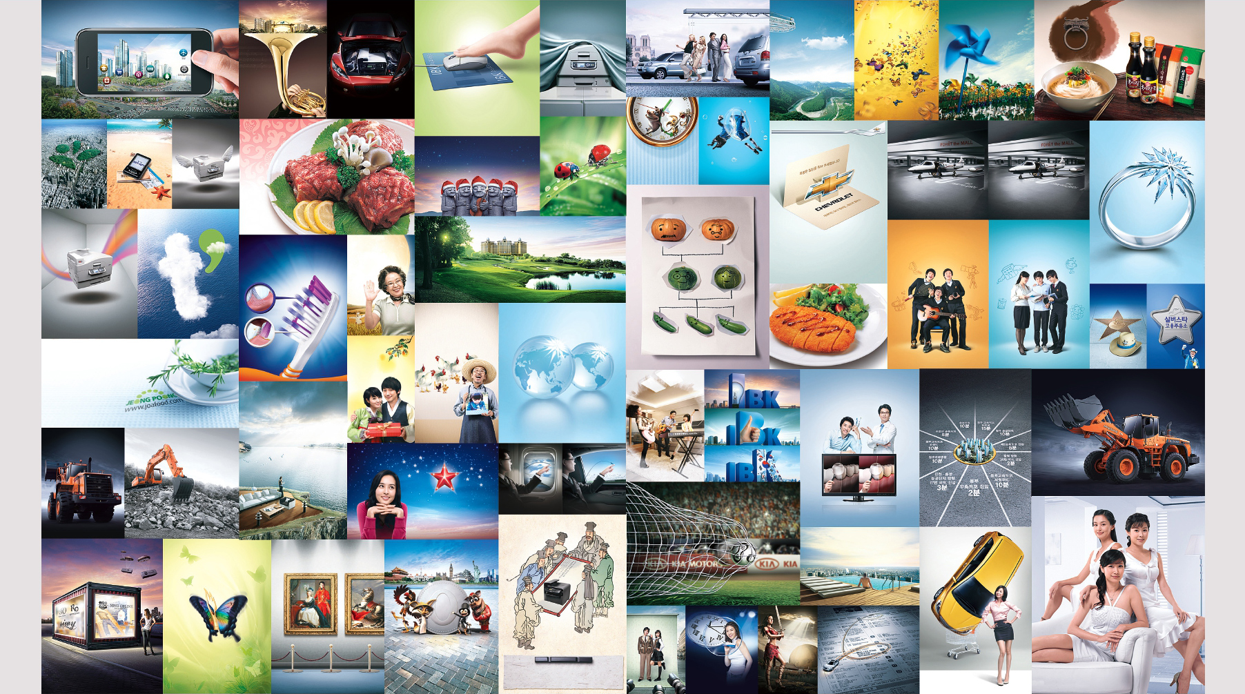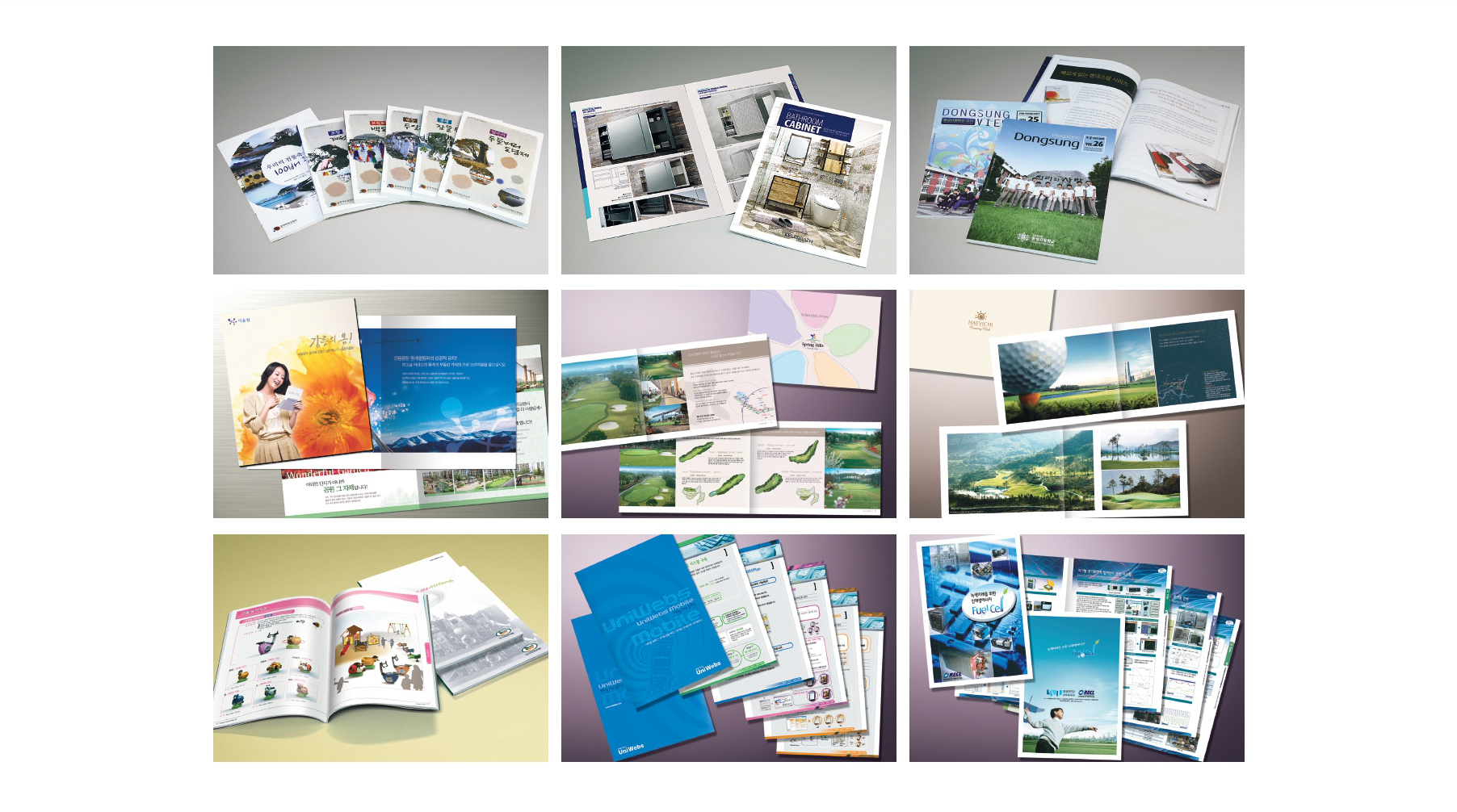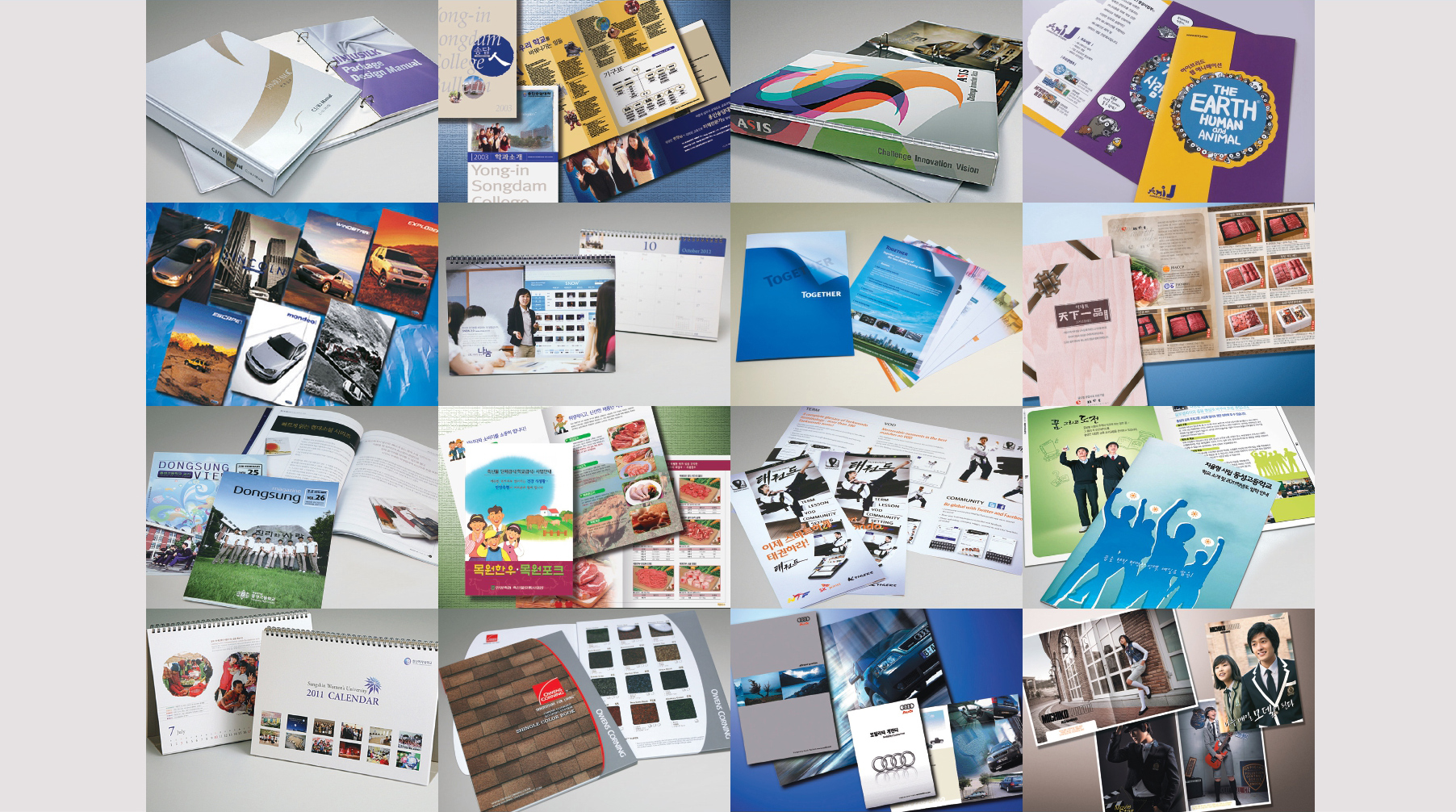 브로슈어, 제품 카다로그, POP, Package 등 인쇄물 제작, C.I B.I 캐릭터 개발,전시 이벤트 그래픽, 판촉물 디자인, 신문, 잡지 등 광고 기획 및 제작